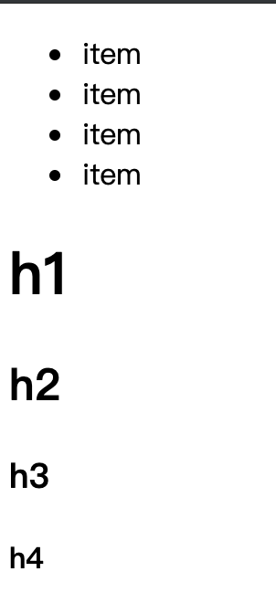 我们都知道,很多标签都是有默认样式的。比如:ul li h1-h6,效果如下:
